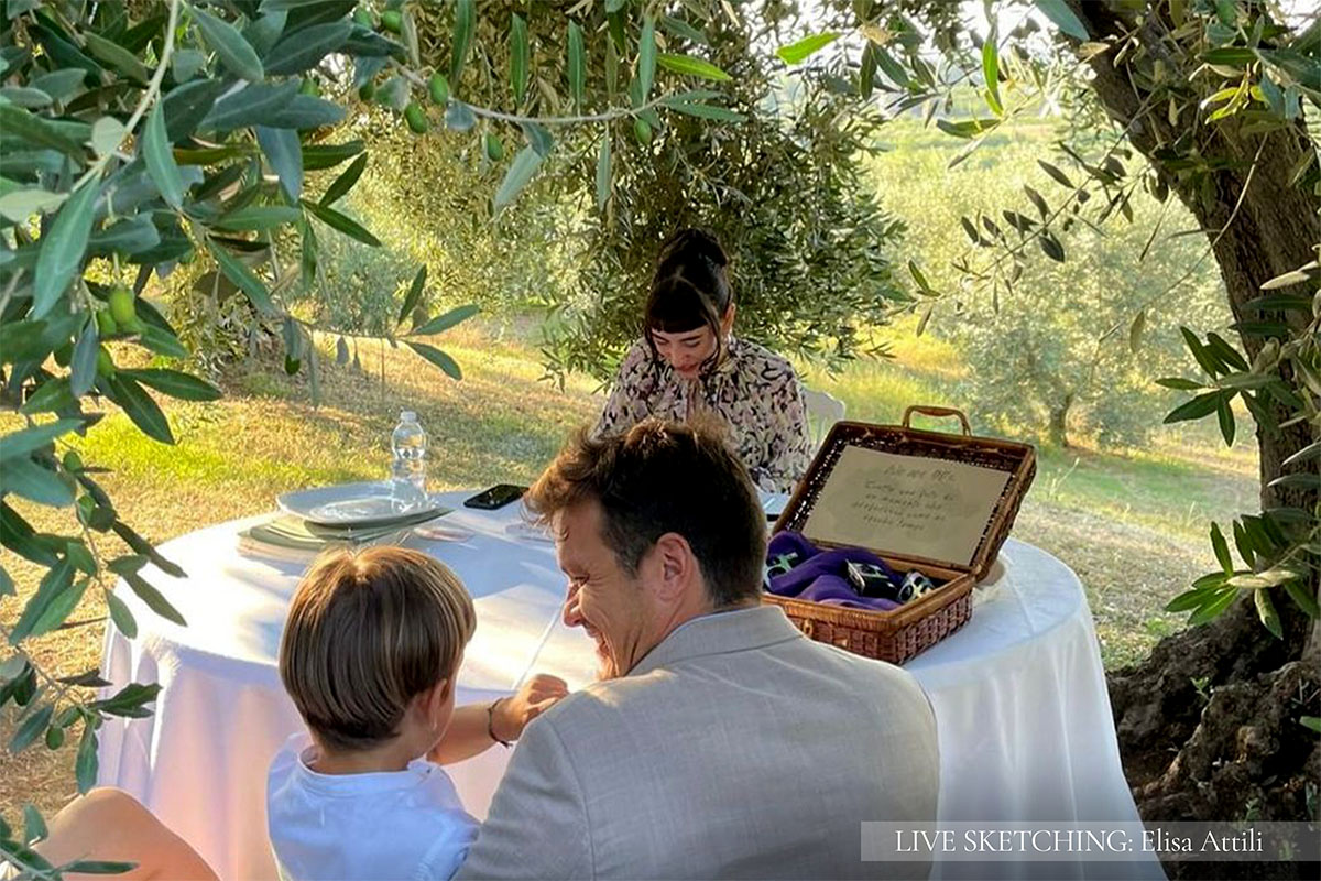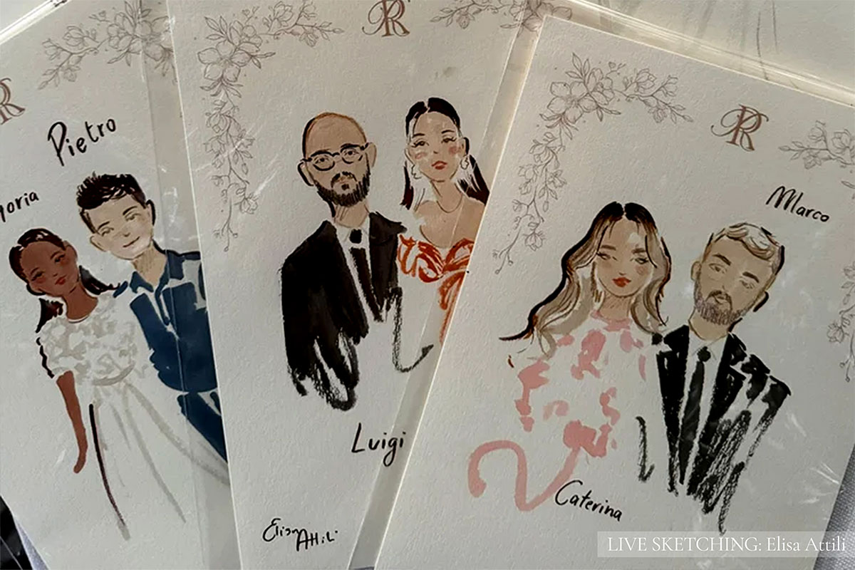 Elisa catturerà i momenti più emozionanti dell’evento con illustrazioni create dal vivo, trasformando attimi unici in ricordi preziosi. Il live sketching aggiunge un tocco intimo ed esclusivo a matrimoni, eventi privati e aziendali.